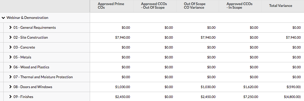 You can use this budget view instead of the one above if buyout is not complete on certain line items.