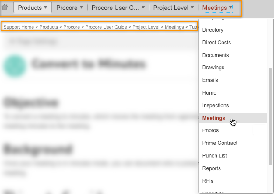- Click the Procore logo on any page on the site to go to the site's homepage.