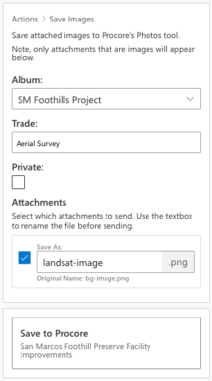 - Album. Choose the Procore album to store the image in.