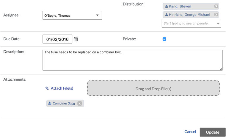 Note: If there are people who you would like to always be on the distribution list for observations, you can add them to the default distribution list in the configuration settings. - Private: Mark the checkbox if you would like this observation to be viewable by Observation Admin users, the assignee, and the people on the distribution list.