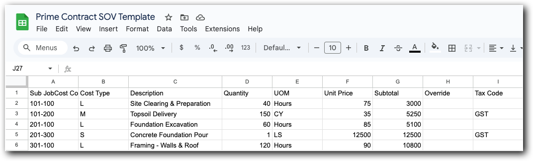 • If the SOV has existing line items, all existing line items will be replaced with the line items in the budget.