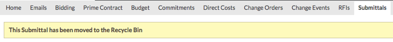 2. Locate the submittal that you want to send to the Recycle Bin.
